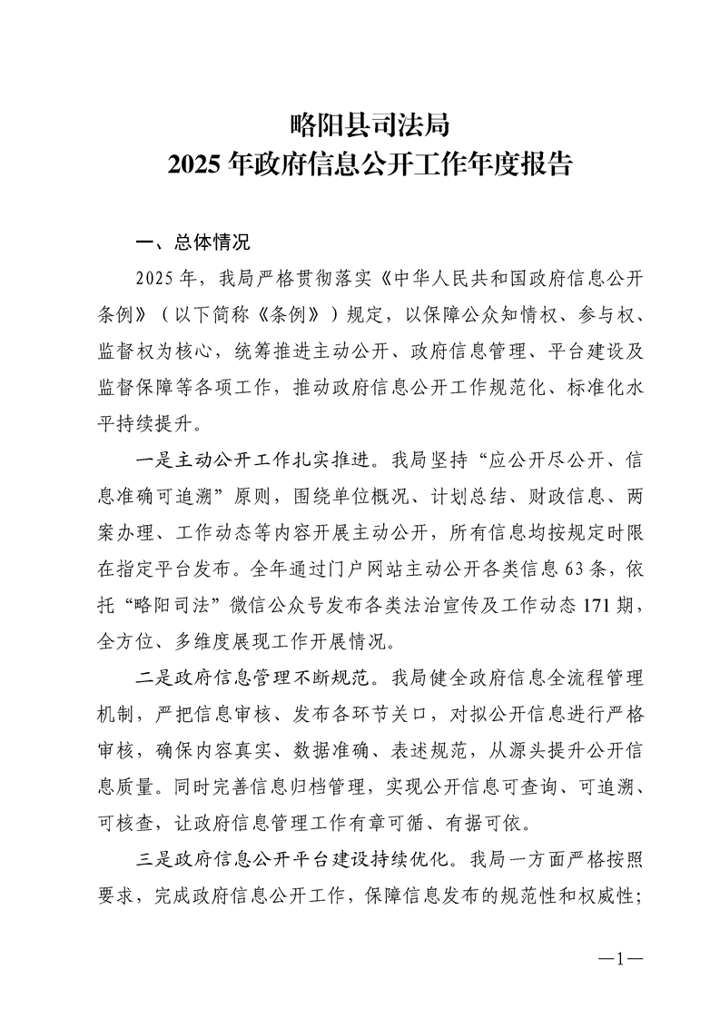 略阳县司法局2025年政府信息公开工作年度报告