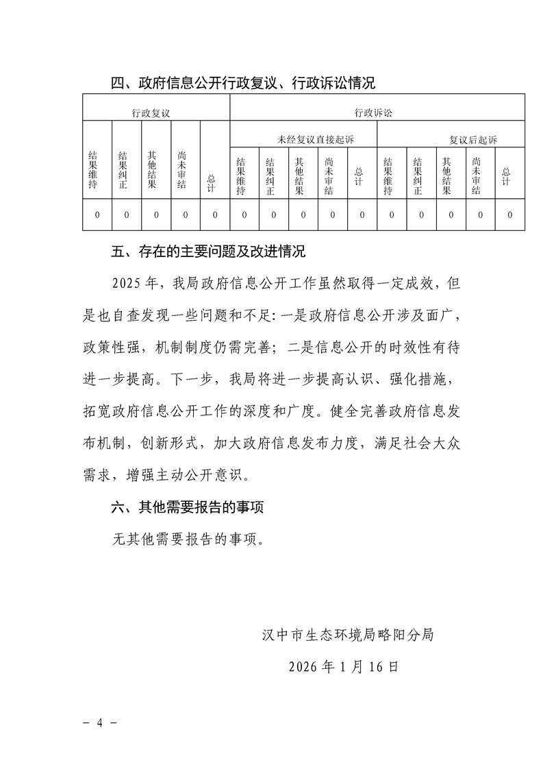 汉中市生态环境局略阳分局2025年政府信息公开工作年度报告