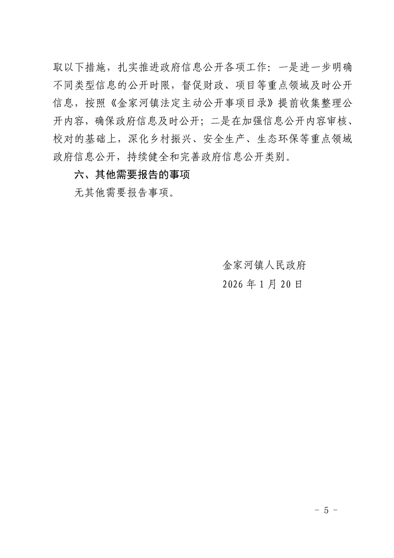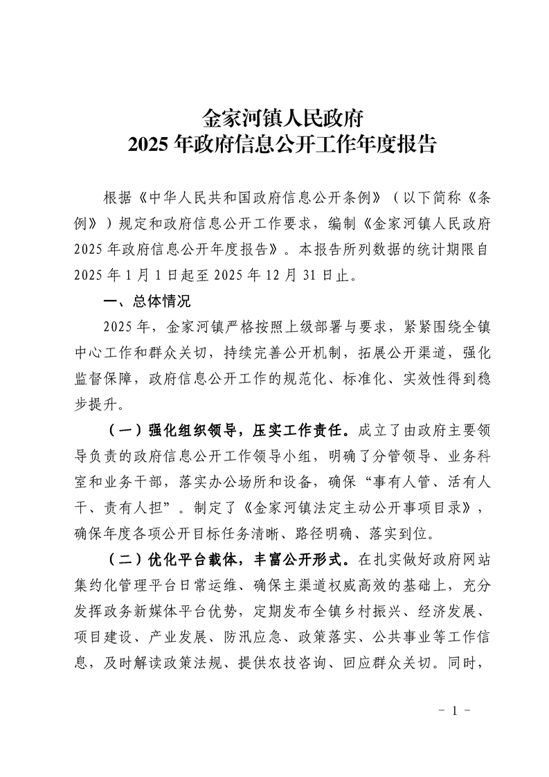金家河镇人民政府2025年政府信息公开工作年度报告