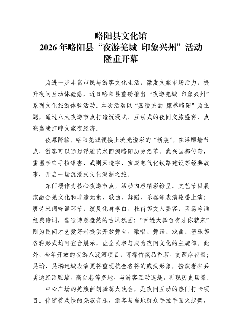 略阳县文化馆2026年略阳县“夜游羌城 印象兴州”活动隆重开幕