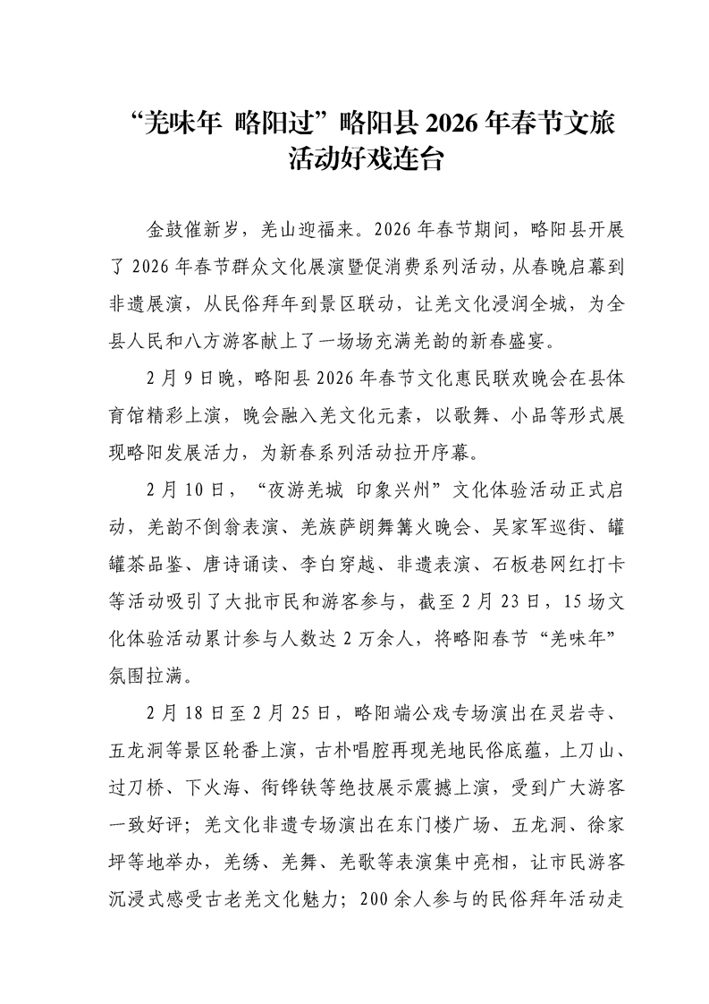 “羌味年 略阳过”略阳县2026年春节文旅活动好戏连台