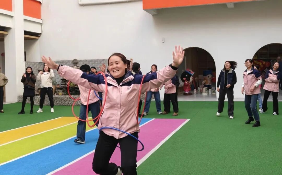▲县幼儿园举办教职工趣味团建活动,全体女教职工欢聚一堂,在游戏中放松身心,展现了新时代幼教巾帼积极向上的精神风貌。