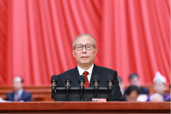 35日上午,第十四届全国人民代表大会第四次会议在北京人民大会堂开幕。受全国人大常委会委托,全国人大常委会副委员长李鸿忠分别作关于生态环境法典草案的说明、关于民族团结进步促进法草案的说明、关于国家发展规划法草案的说明。新华社记者丁海涛摄