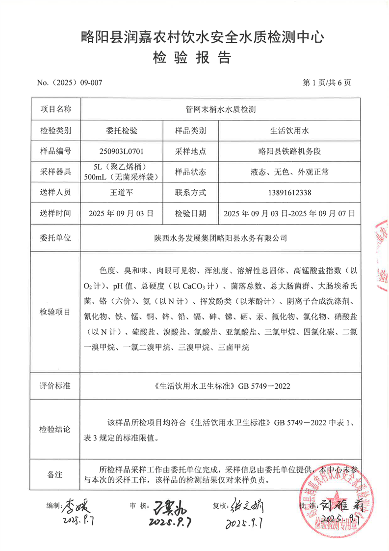 水质检测报告9月-6城区管网末梢-铁路机务段