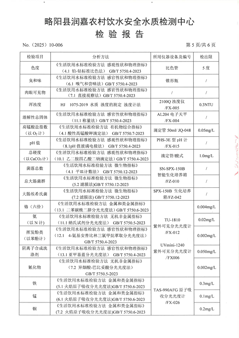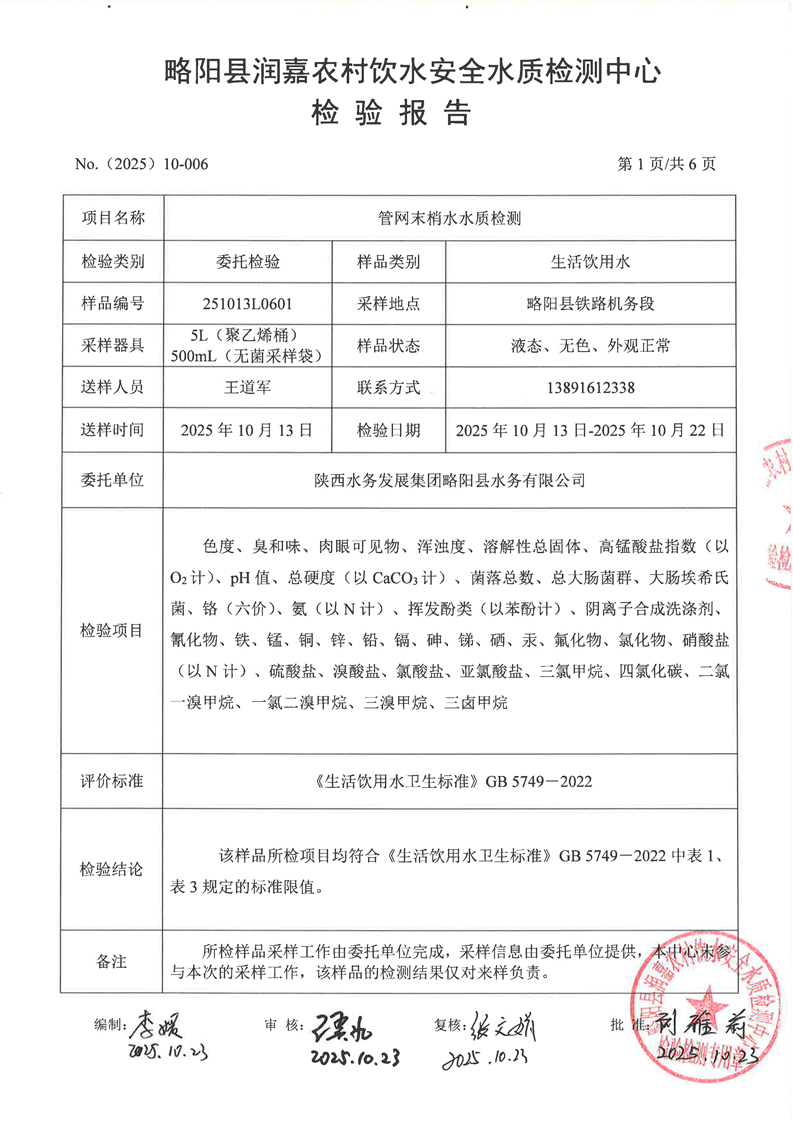 水质检测报告10月-6城区管网末梢-铁路机务段