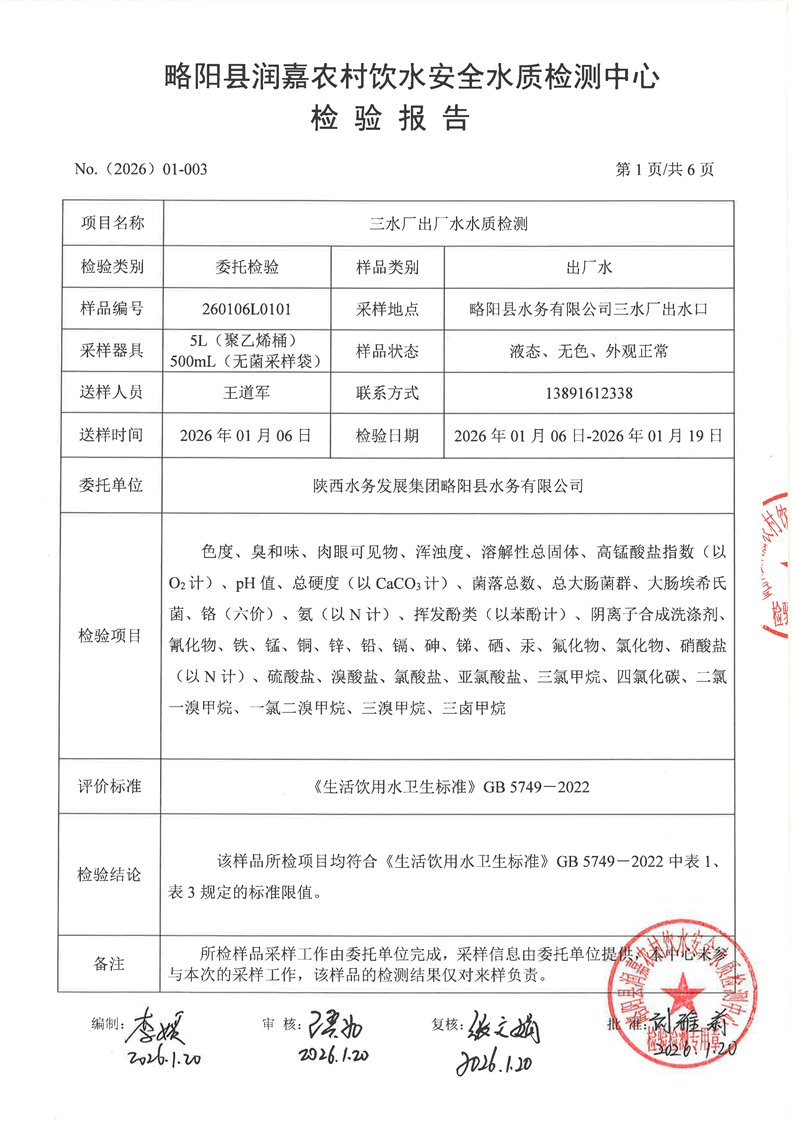 2026年水质检测报告1月-1出厂水