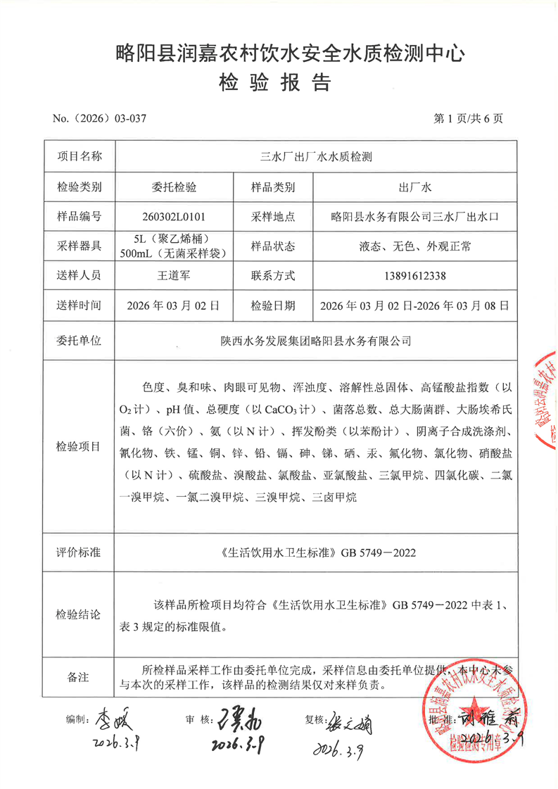 2026年水质检测报告3月-1出厂水