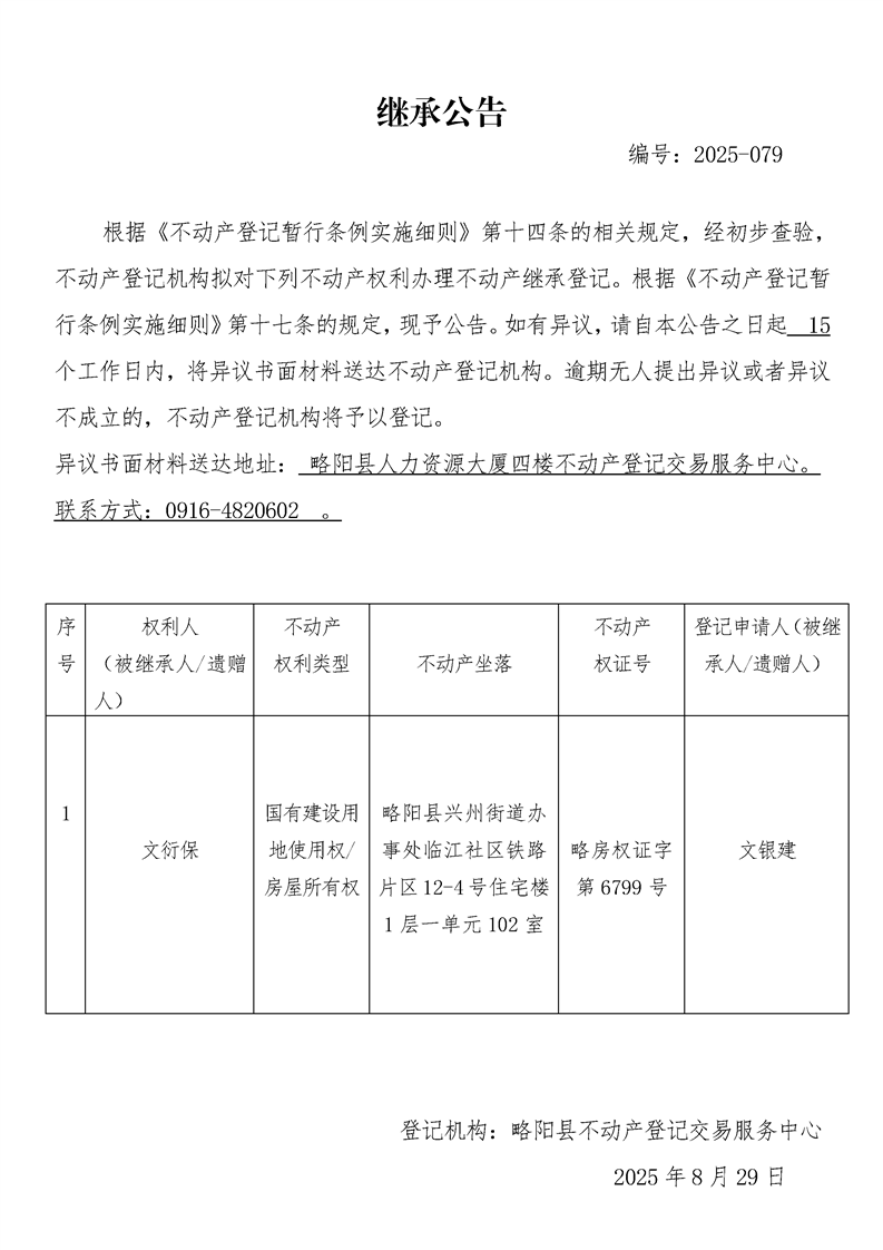继承公告编号:2025-079