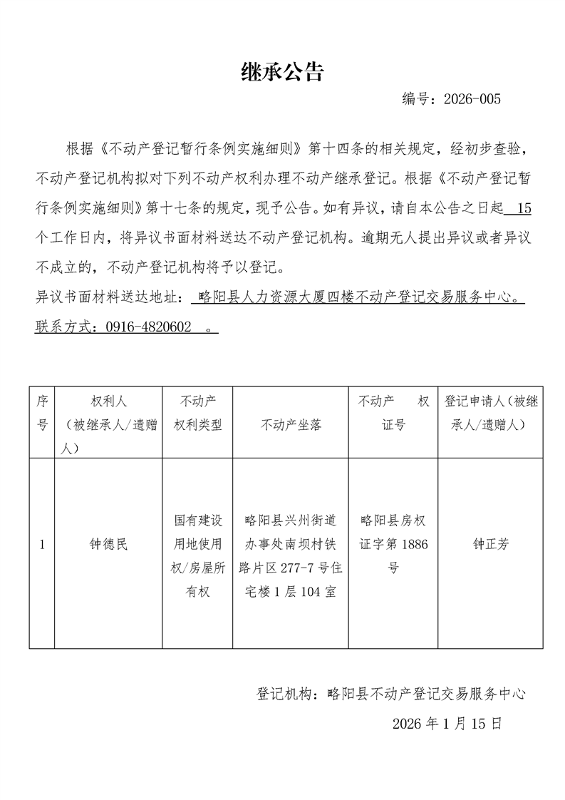 继承公告编号:2026-005