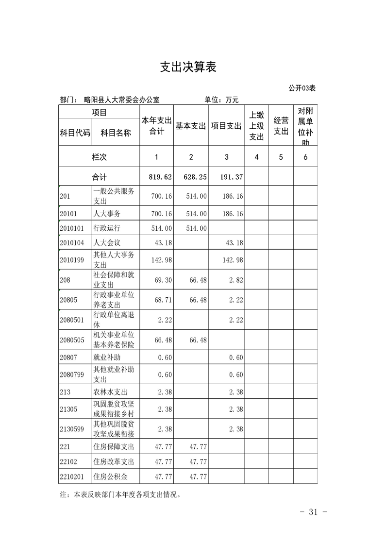| 内容概述 | 略阳县人大常委会办公室2024年度部门决算 | ||||