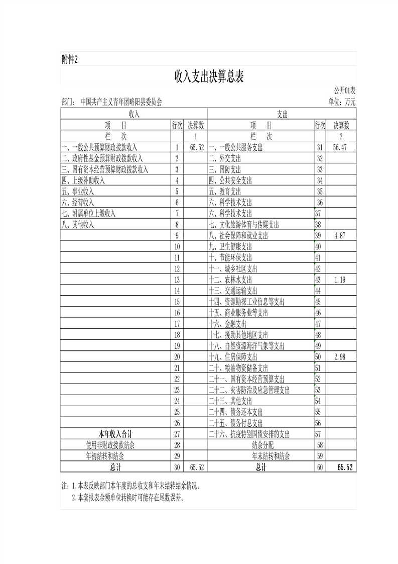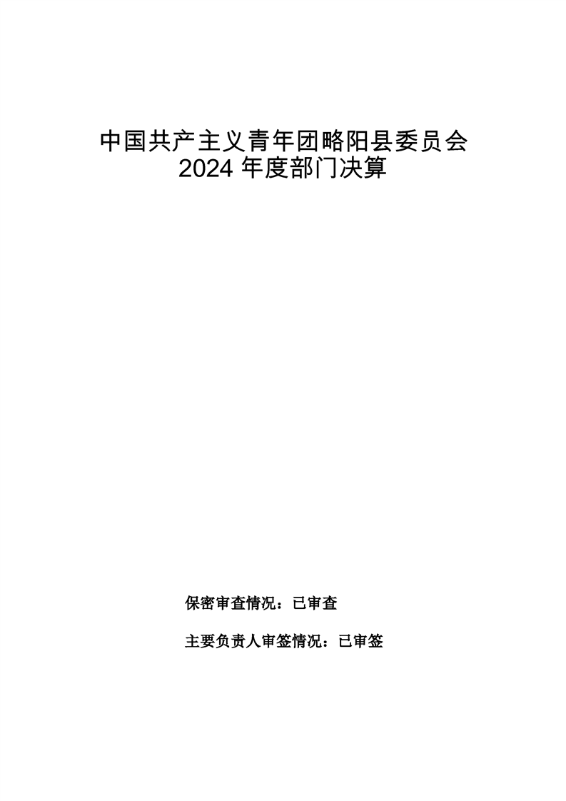 | 内容概述 | 中国共产主义青年团略阳县委员会2024年度部门决算 | ||||