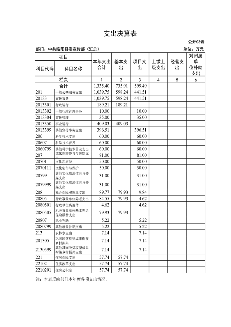 | 内容概述 | 中共略阳县委宣传部(汇总)2024年度部门决算 | ||||