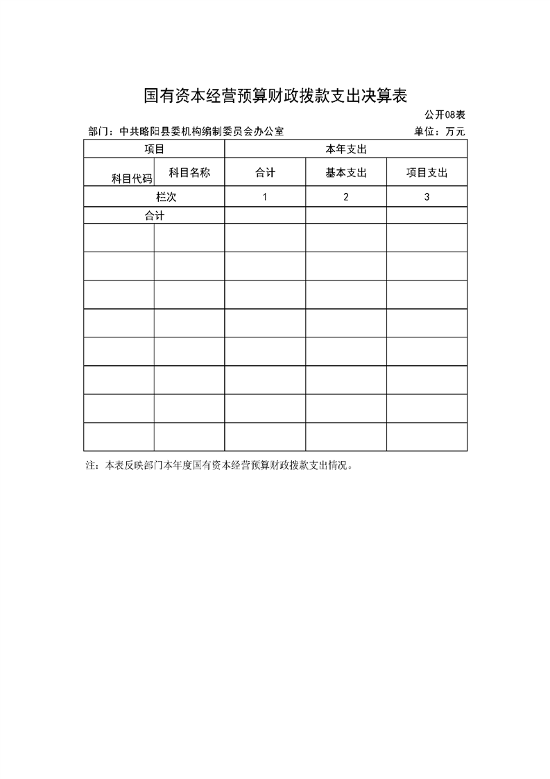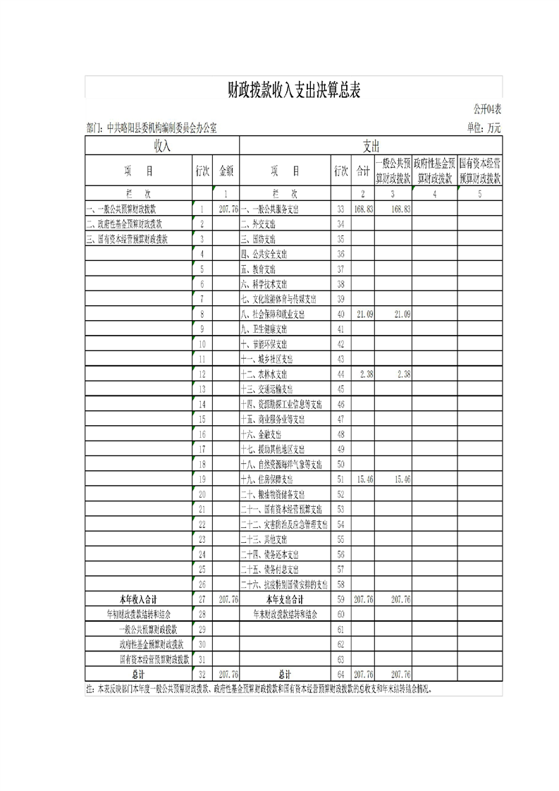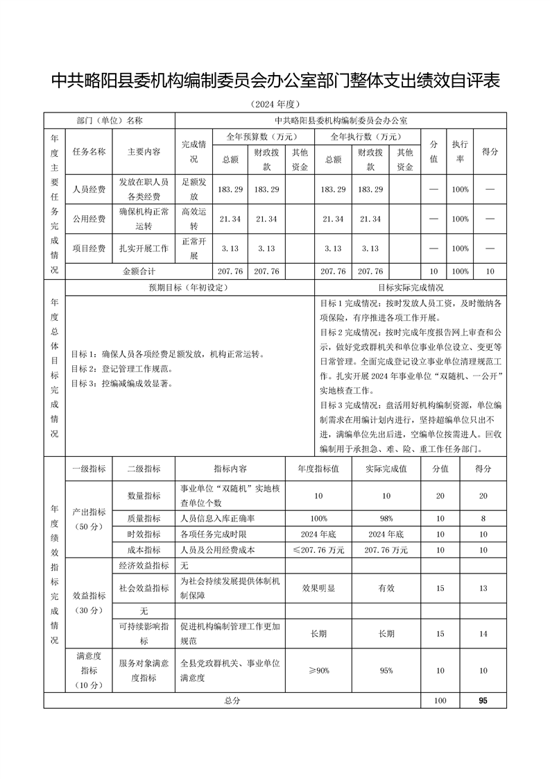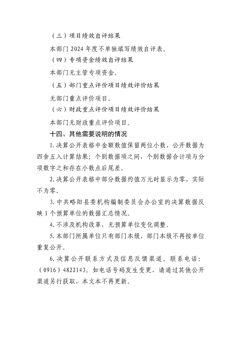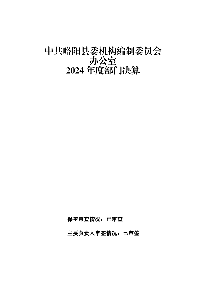 | 内容概述 | 中共略阳县委机构编制委员会办公室2024年度部门决算 | ||||
