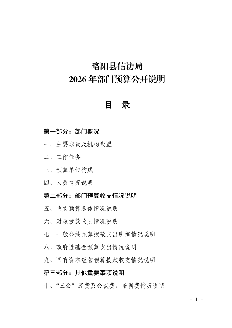 | 内容概述 | 略阳县信访局2026年部门预算公开说明 | ||||