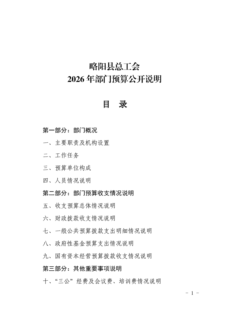 | 内容概述 | 略阳县总工会2026年部门预算公开说明 | ||||
