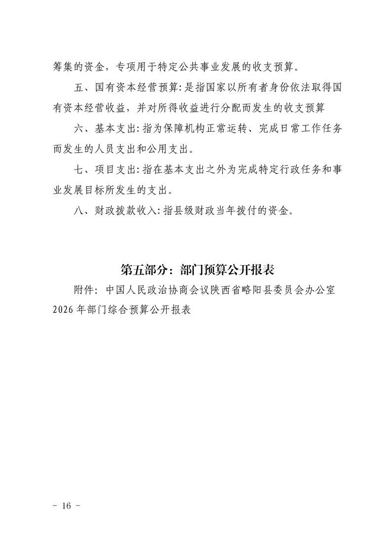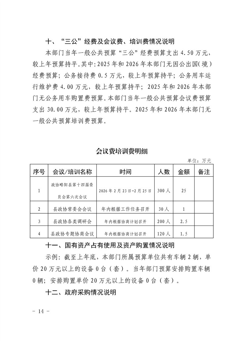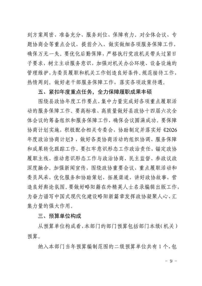 | 内容概述 | 中国人民政治协商会议陕西省略阳县委员会办公室2026年部门预算公开说明 | ||||
