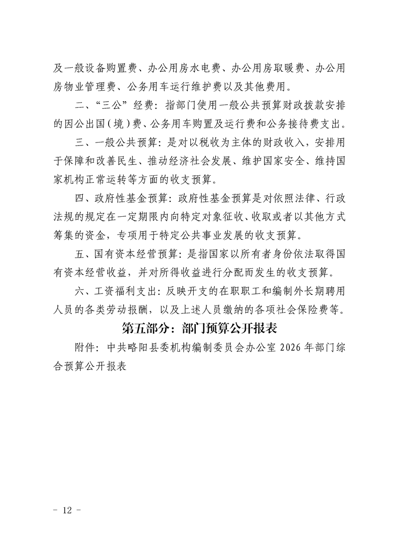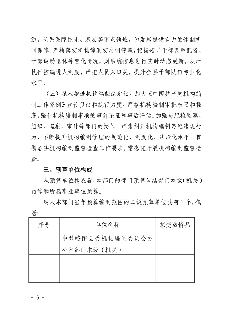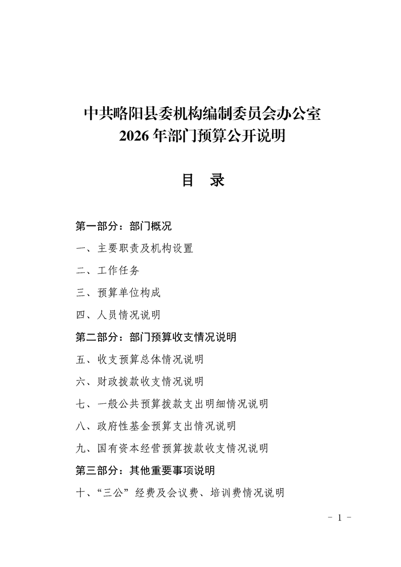 | 内容概述 | 中共略阳县委机构编制委员会办公室2026年部门预算公开说明 | ||||