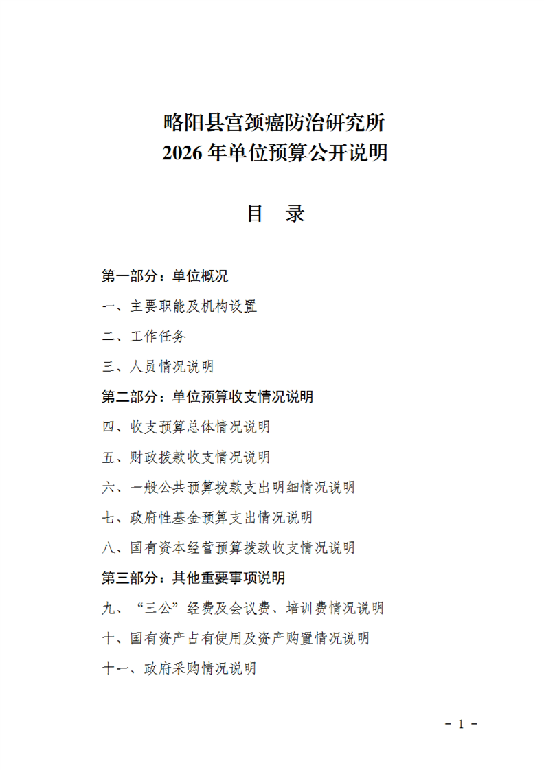 | 内容概述 | 略阳县宫颈癌防治研究所2026年单位预算公开说明 | ||||