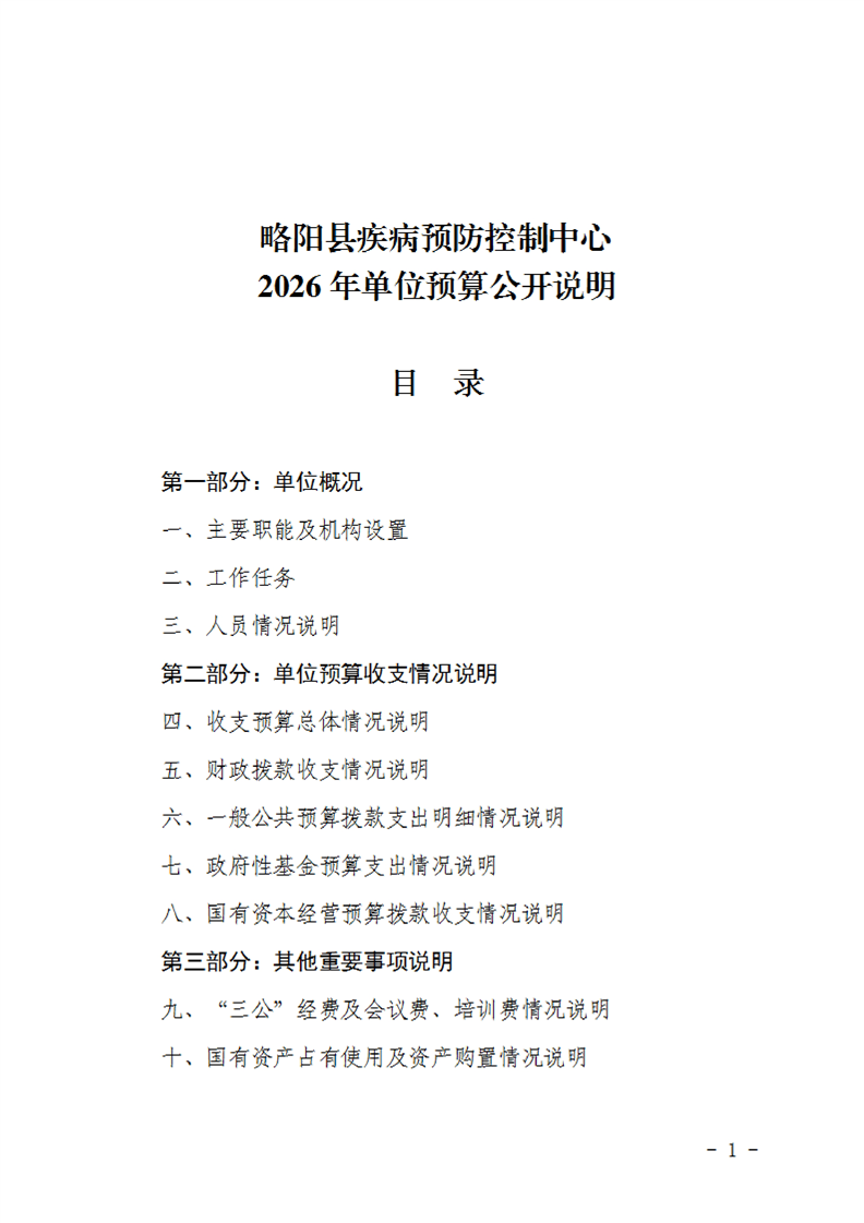 | 内容概述 | 略阳县疾病预防控制中心2026年单位预算公开说明 | ||||