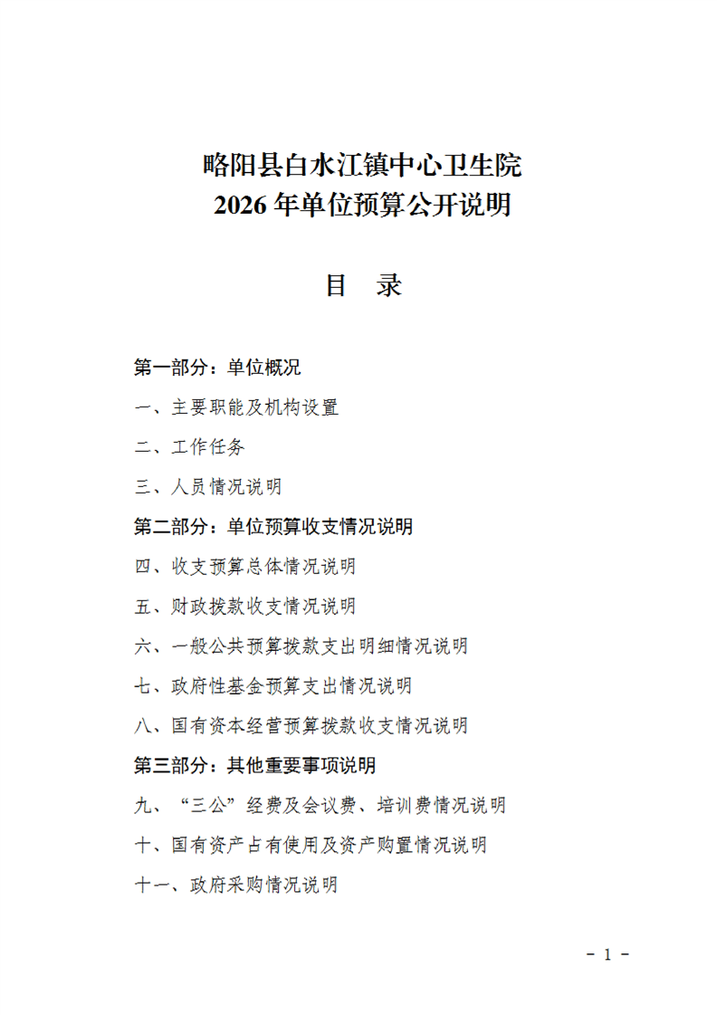| 内容概述 | 略阳县白水江镇中心卫生院2026年单位预算公开说明 | ||||