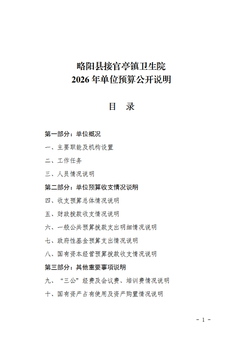 | 内容概述 | 略阳县接官亭镇卫生院2026年单位预算公开说明 | ||||
