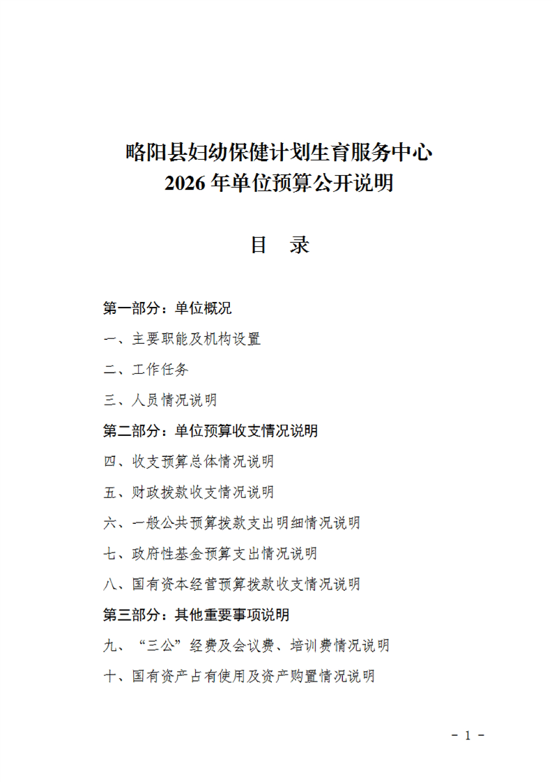 | 内容概述 | 略阳县妇幼保健计划生育服务中心2026年单位预算公开说明 | ||||