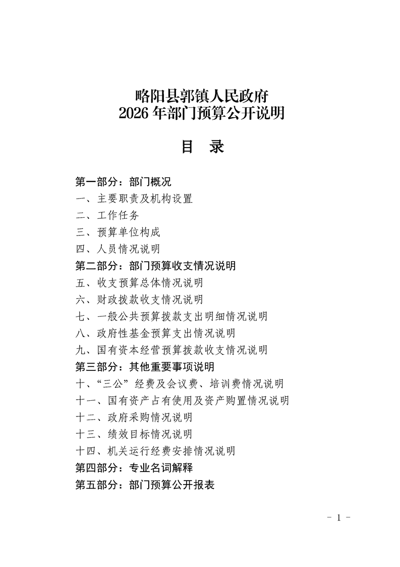 | 内容概述 | 略阳县郭镇人民政府2026年部门预算公开说明 | ||||