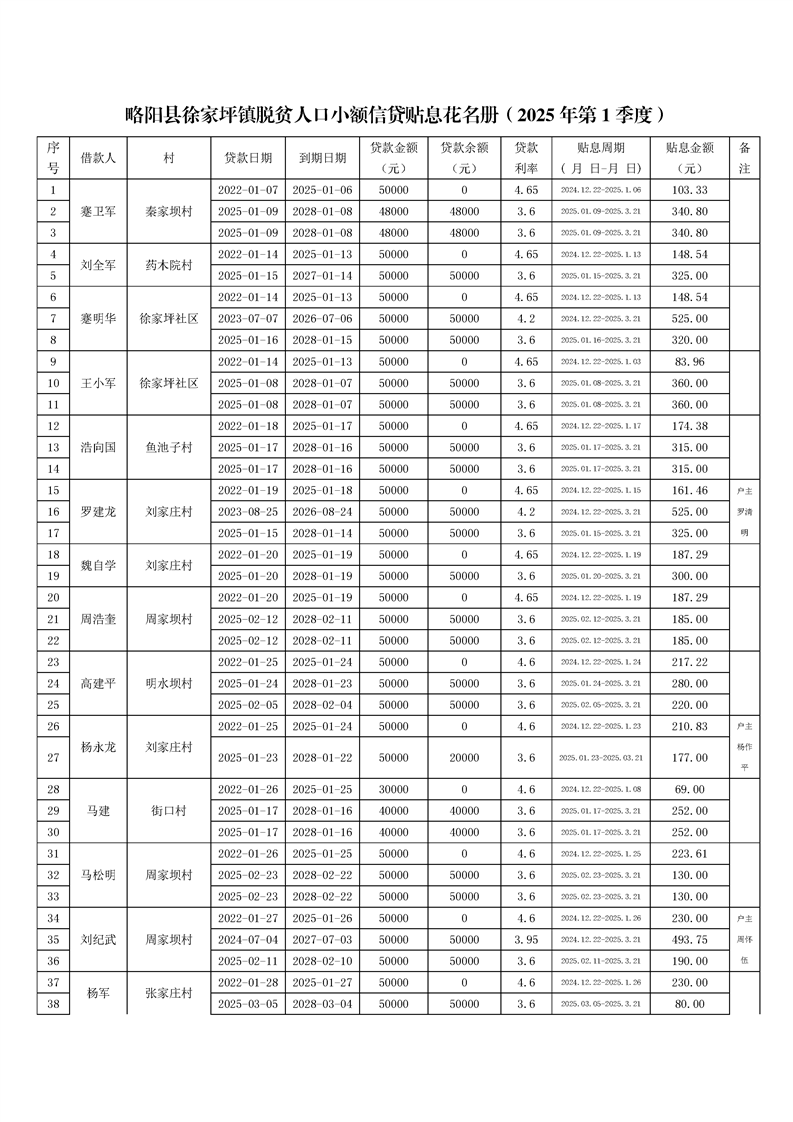 | 内容概述 | 略阳县徐家坪镇2025年第1季度脱贫人口小额信贷贴息资金情况公告 | ||||
