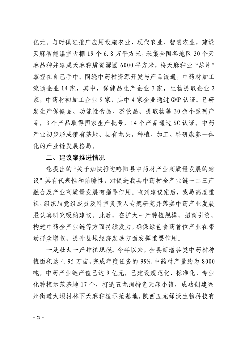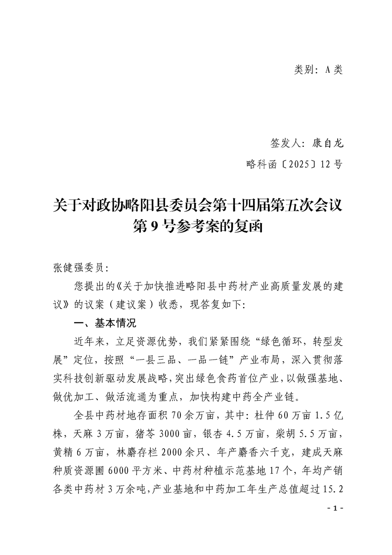 关于对政协略阳县委员会第十四届第五次会议第9号参考案的复函