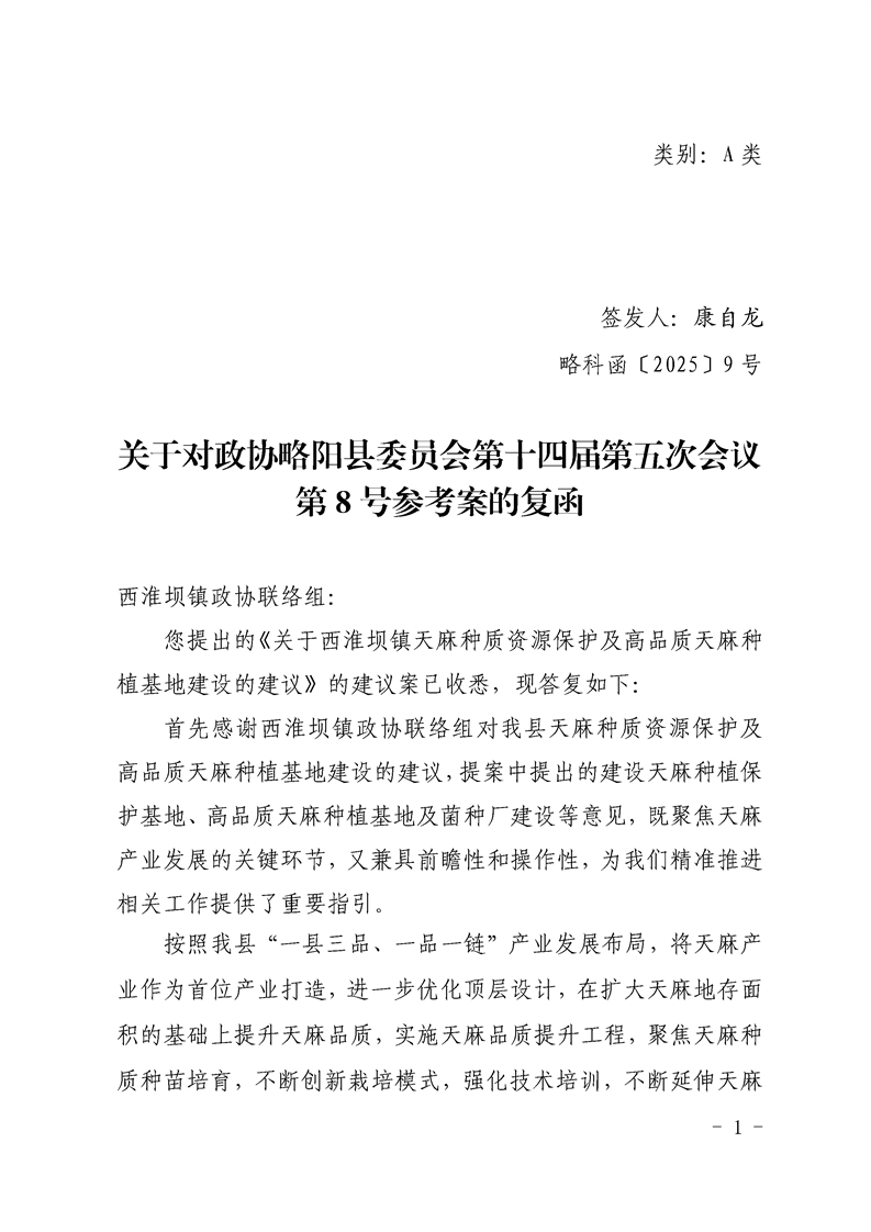 关于对政协略阳县委员会第十四届第五次会议第8号参考案的复函