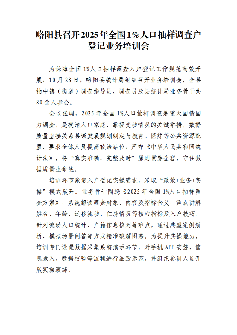 略阳县召开2025年全国1%人口抽样调查户登记业务培训会