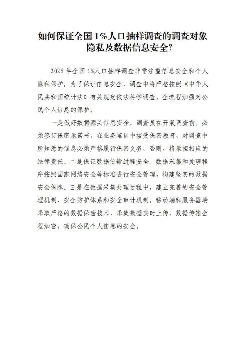 如何保证全国1%人口抽样调查的调查对象隐私及数据信息安全?