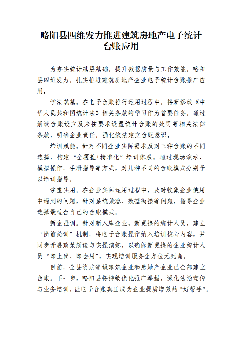 略阳县四维发力推进建筑房地产电子统计台账应用