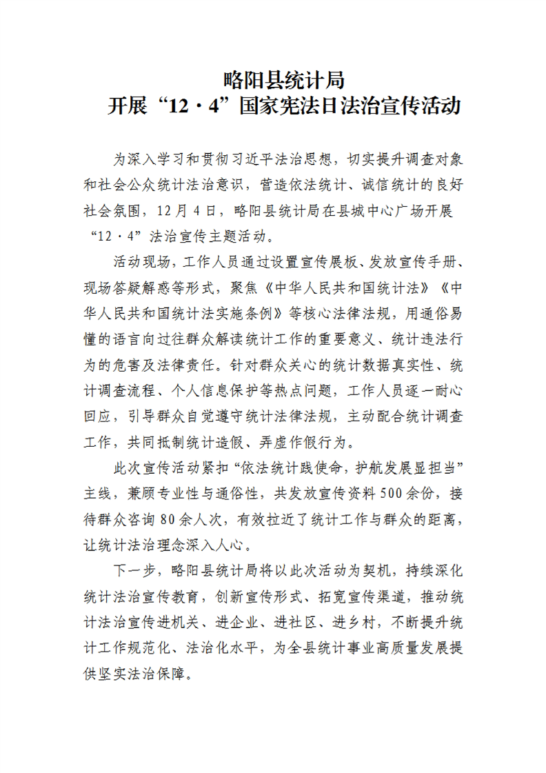 略阳县统计局开展“12·4”国家宪法日法治宣传活动