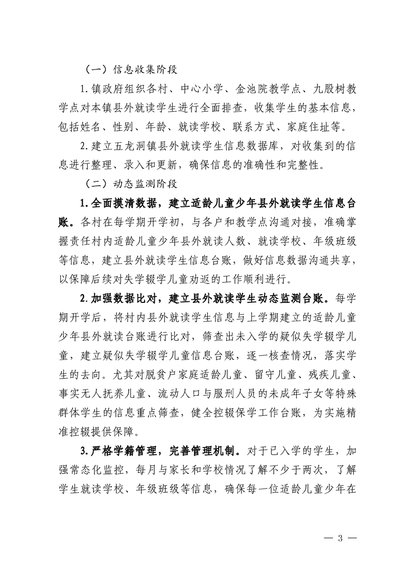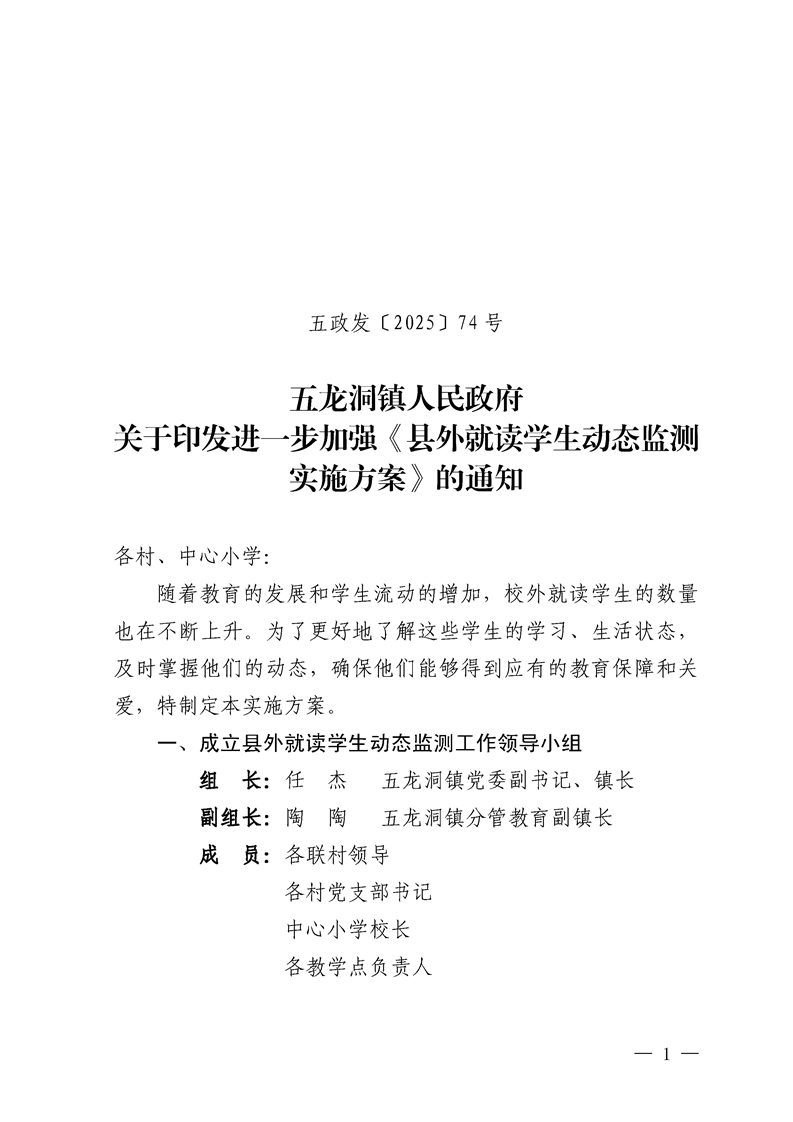五龙洞镇人民政府关于印发进一步加强《县外就读学生动态监测实施方案》的通知