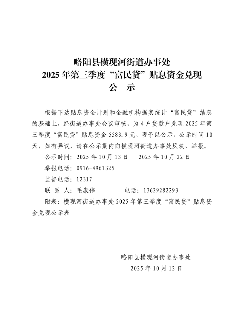 2025 年第三季度“富民贷”贴息资金兑现公示