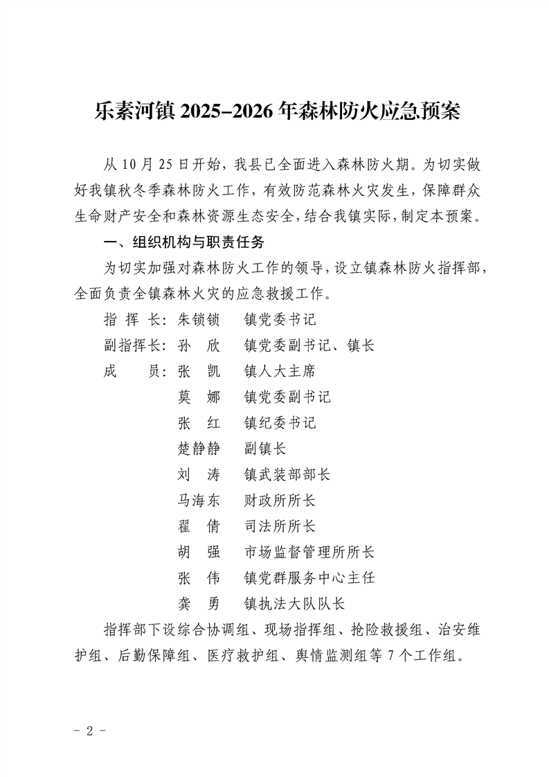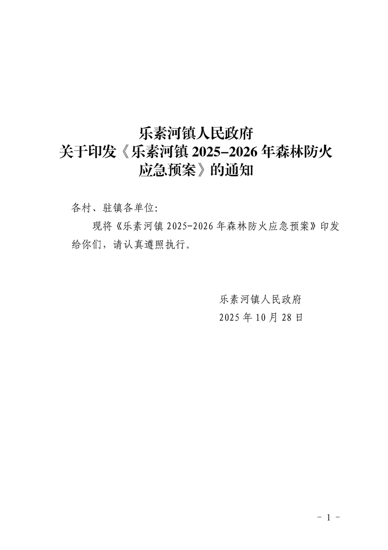 乐素河镇人民政府关于印发《乐素河镇2025-2026年森林防火应急预案》的通知