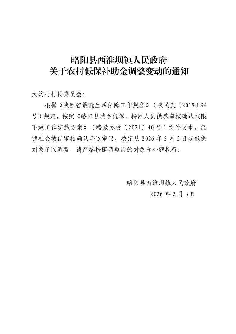 关于农村低保补助金调整变动的通知