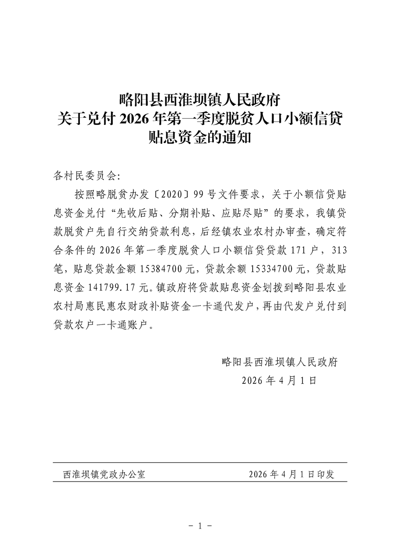 西政发〔2026〕12号关于兑付2026年第一季度脱贫人口小额信贷贴息资金的通知