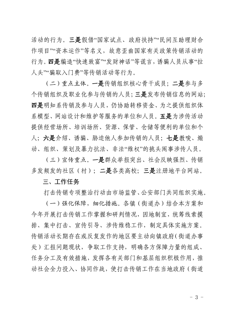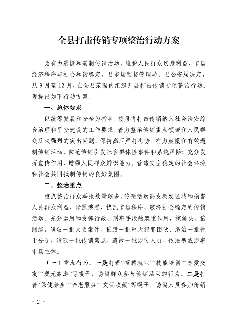 关于印发《全县打击传销专项整治行动方案》的通知