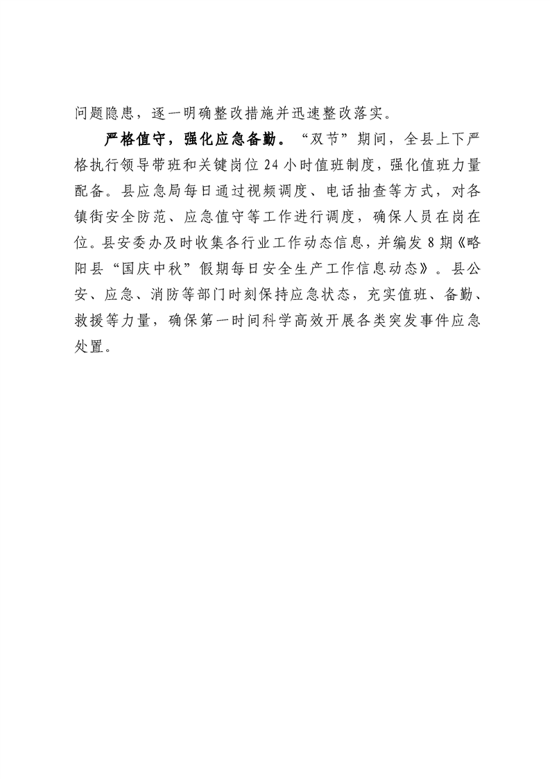 国庆中秋假期略阳县安全生产形势总体稳定
