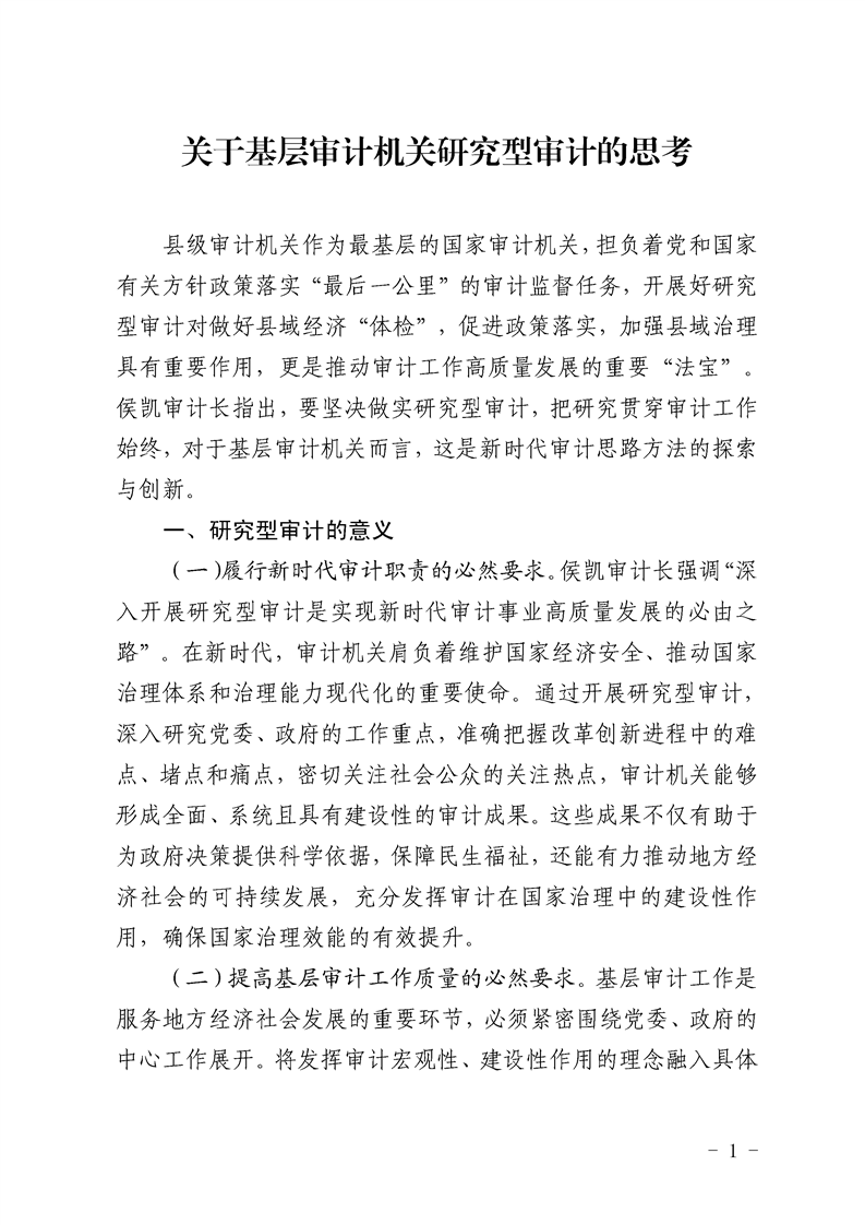 关于基层审计机关研究型审计的思考