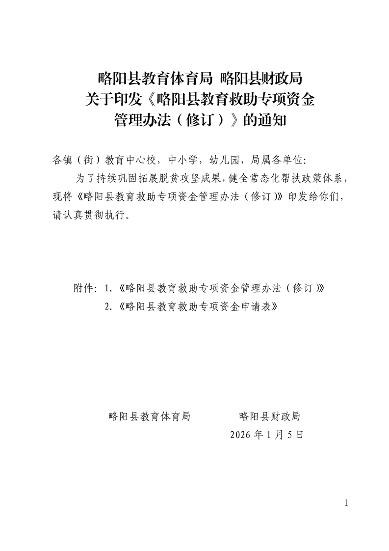 略教体发〔2026〕6 号关于印发《略阳县教育救助专项资金管理办法(修订)》的通知