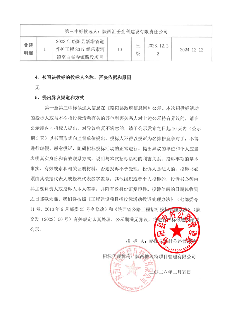 | 内容概述 | 略阳县2025年(第二批)农村公路养护工程(桥梁加固维修)项目中标候选人公示 | ||||