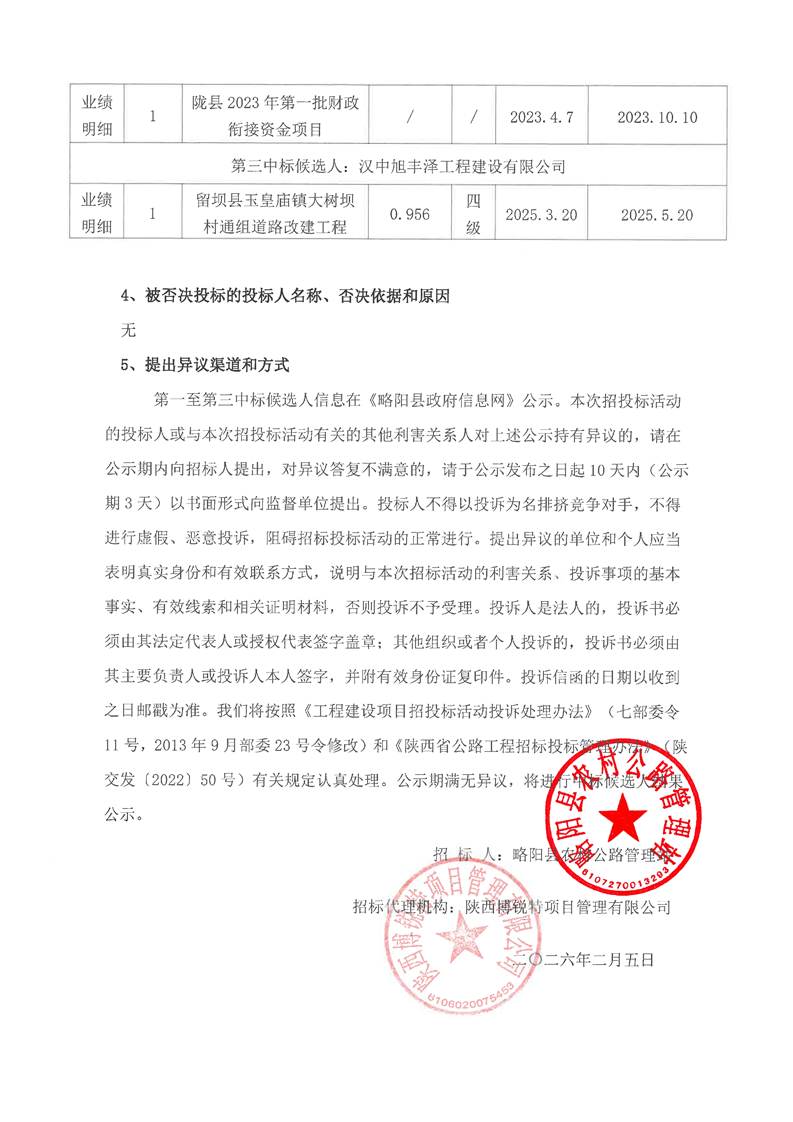 | 内容概述 | 略阳县2025年新增农村公路养护工程X241略五路中川河口至五龙洞段(K18+300—K28+033)中标候选人公示 | ||||