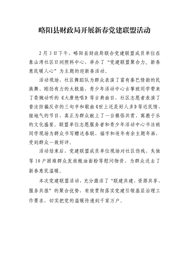 略阳县财政局开展新春党建联盟活动