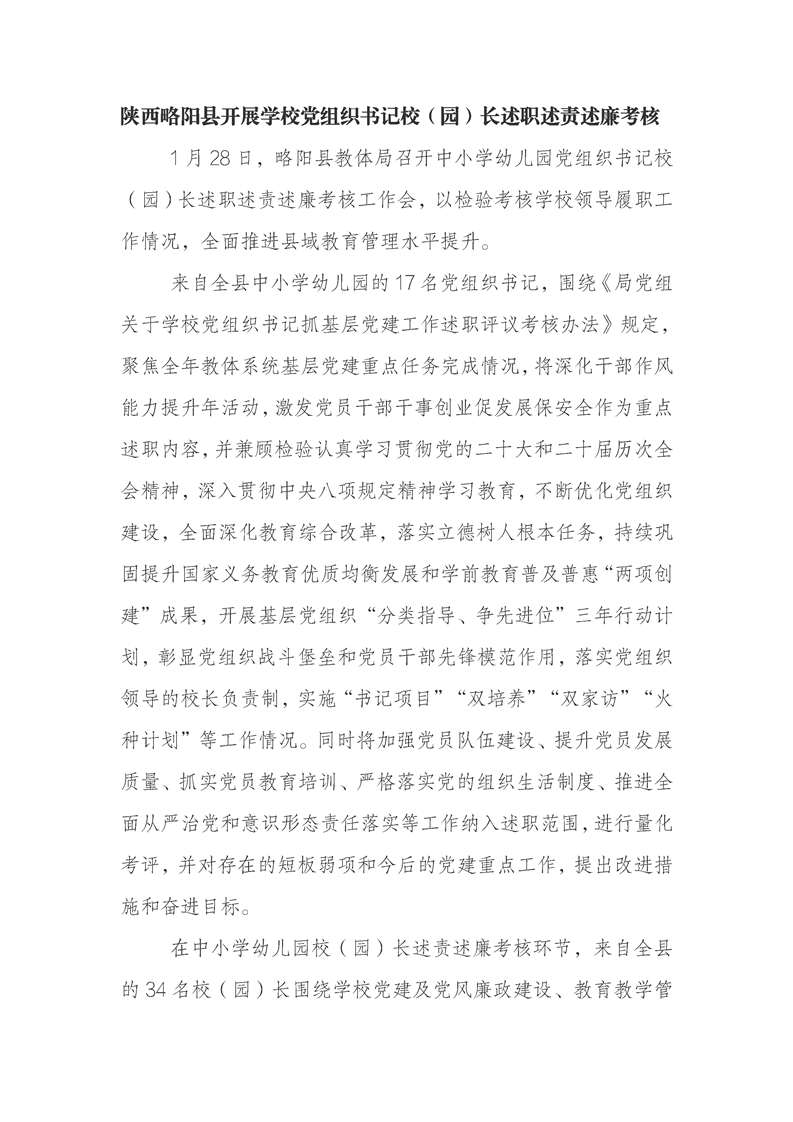 陕西略阳县开展学校党组织书记校(园)长述职述责述廉考核