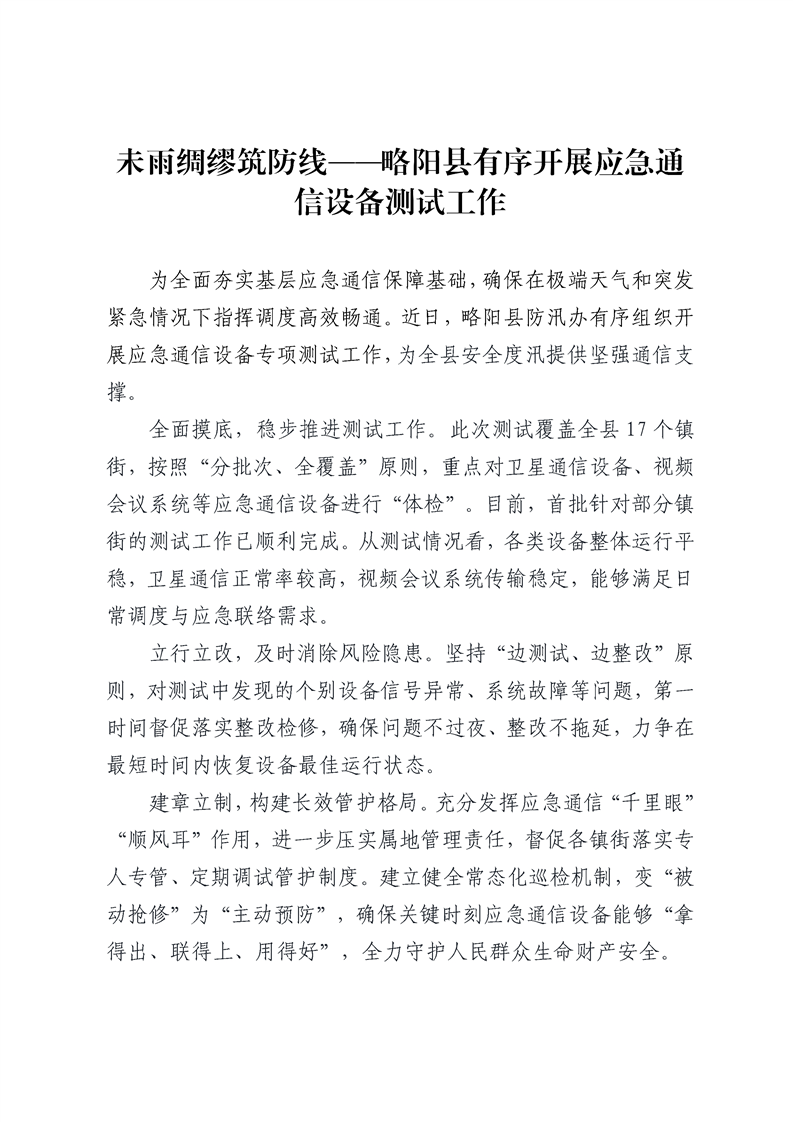 未雨绸缪筑防线——略阳县有序开展应急通信设备测试工作