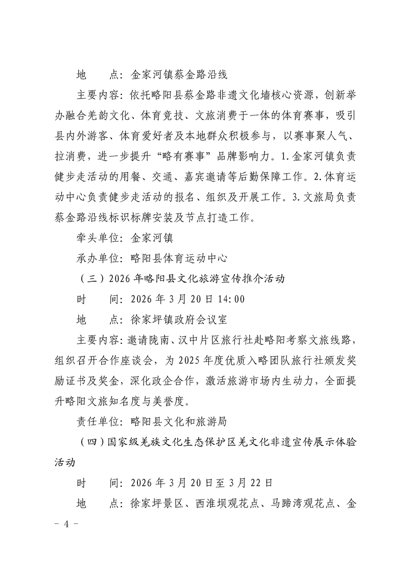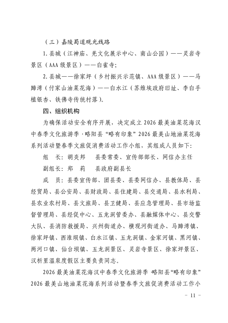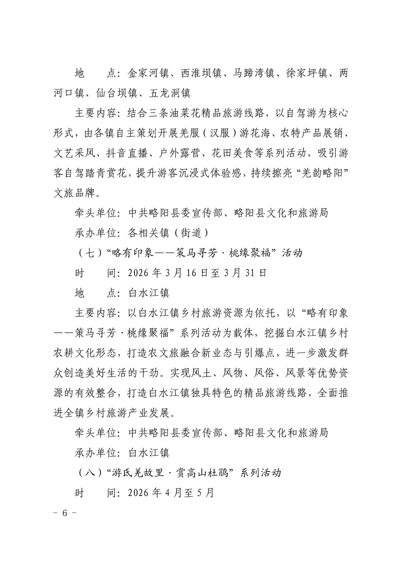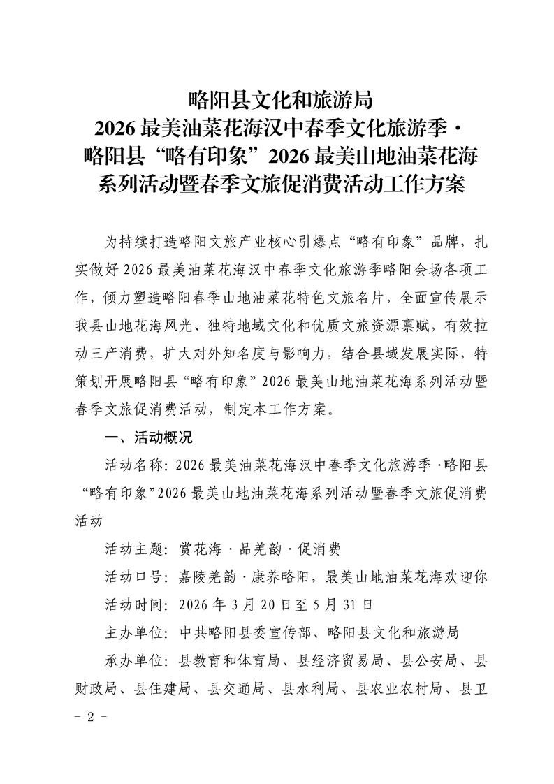 | 内容概述 | 略阳县文化和旅游局2026最美油菜花海汉中春季文化旅游季·略阳县“略有印象”2026最美山地油菜花海系列活动暨春季文旅促消费活动工作方案 | ||||