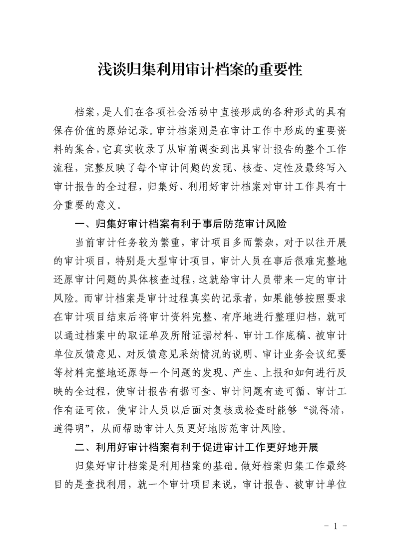 浅谈归集利用审计档案的重要性